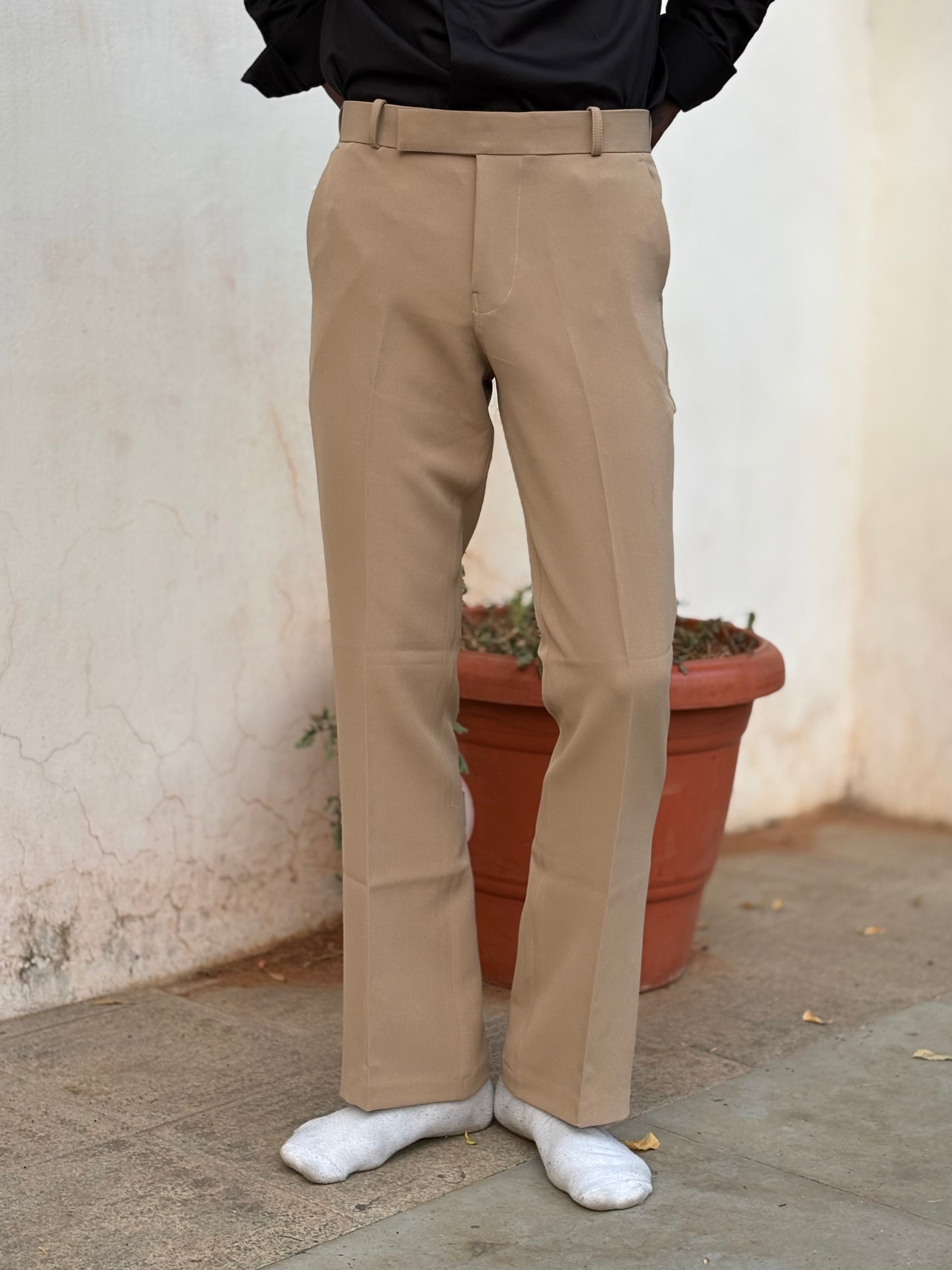 Beige Bootcut Formal Pants