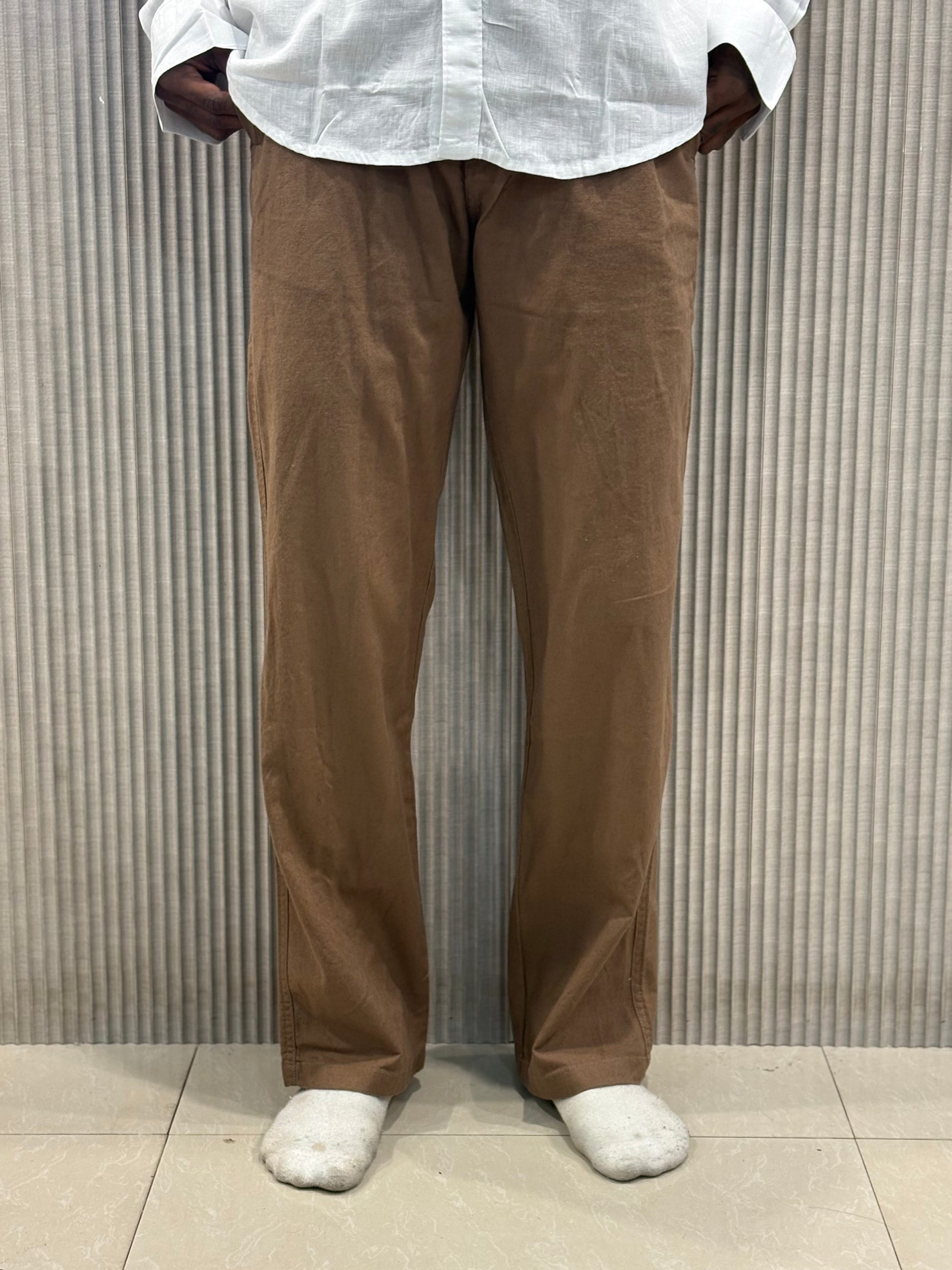 Brown Linen Relaxed Fit Draw String Pants