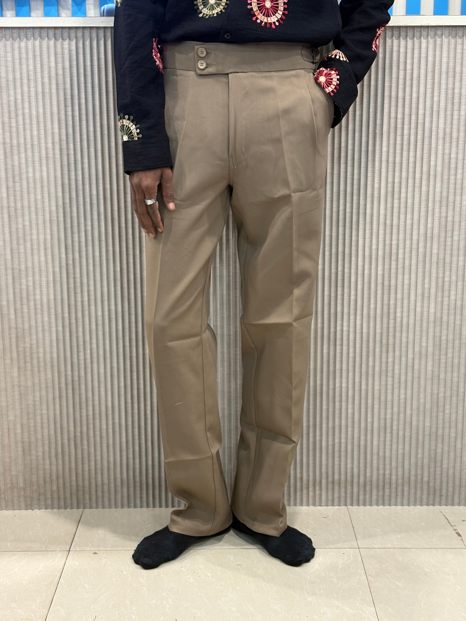 Elevate your wardrobe with our Italian-inspired Gurkha Pants, a perfect blend of timeless tailoring and modern sophistication. Featuring the signature double-pleated front, high-rise waist, and extended buckle fastening, these pants are crafted for both comfort and elegance. The refined silhouette makes them versatile enough to pair with crisp shirts for formal occasions or relaxed knits for a smart-casual edge. Designed with precision and premium fabric, these pants bring together classic heritage and the effortless charm of Italian style.