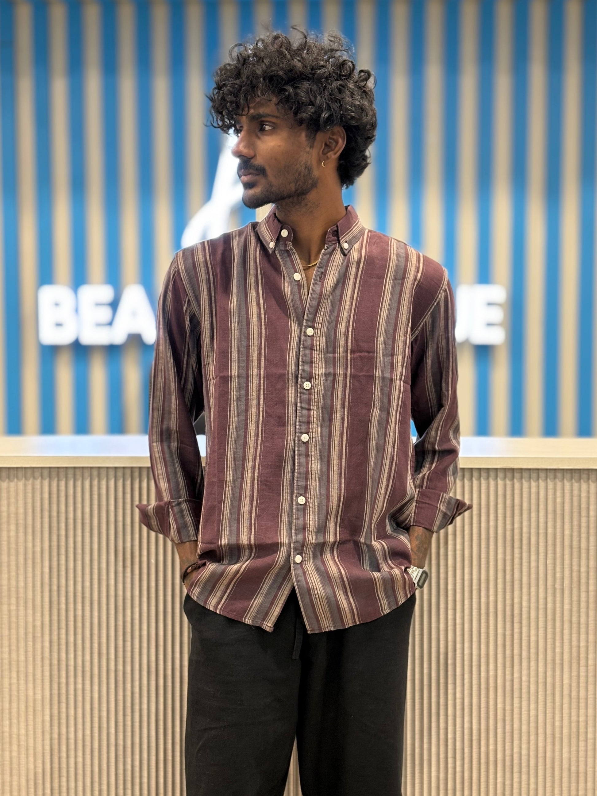 Wine Striped Linen Shirt